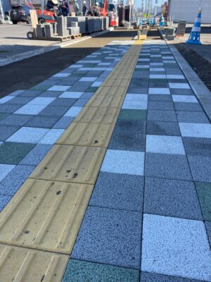 この工程は、完成後の歩道の耐久性と美しさを左右する大切な作業です。